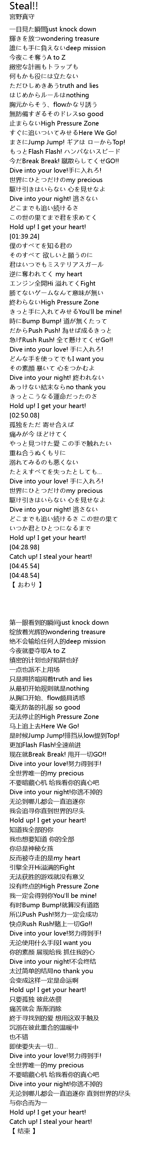 | [04:44.11] | Catch up! I steal your heart! |
