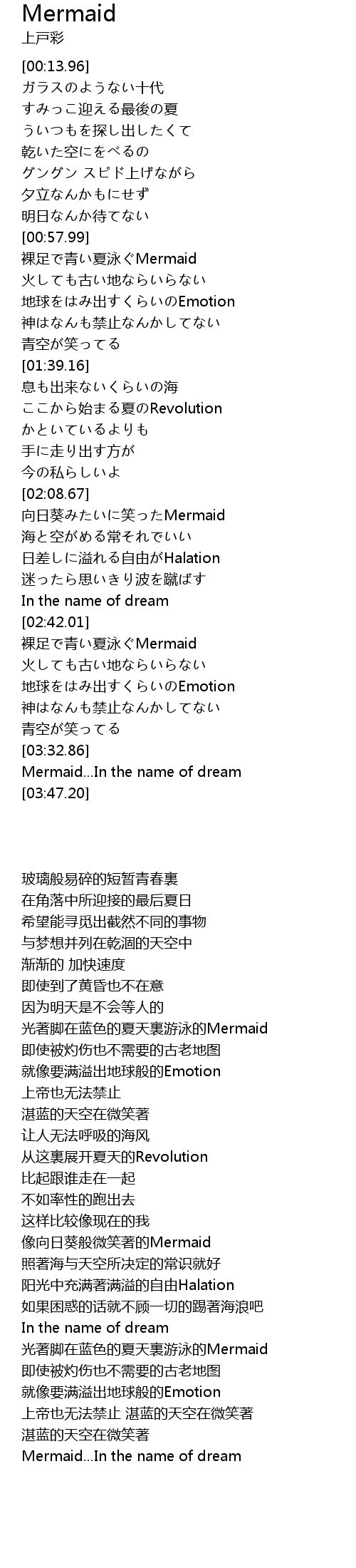 | [03:34.04] | Mermaid...In the name of dream |