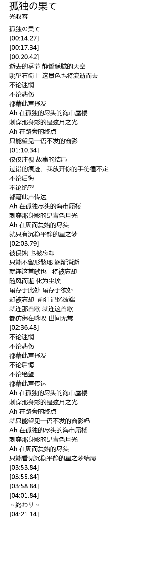 | [01:42.58] | Ah 在孤独尽头的海市蜃楼 |