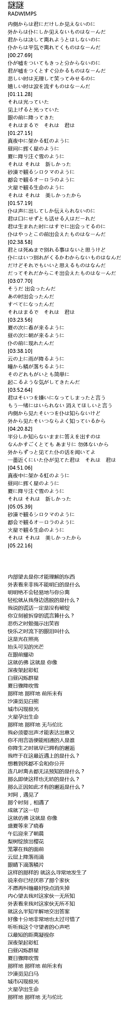 | [02:33.34] | 仆はやっとこの前出会えたものはなーんだ |