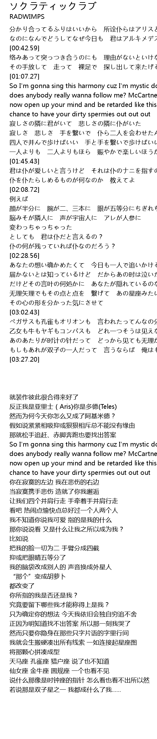 | [00:31.42] | 分かり合ってるふりはいいから 所诠仆らはアリスとテレス |