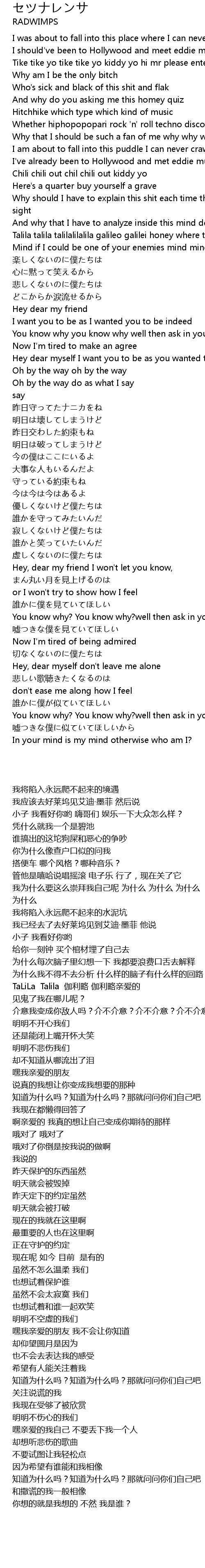 | [01:13.31] | Talila talila talilalilalila galileo galilei honey where the heckam I |