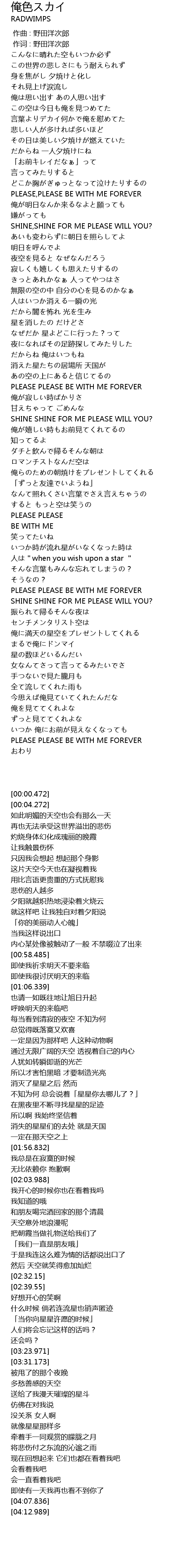 | [00:01.00] | 作词 : 野田洋次郎 |