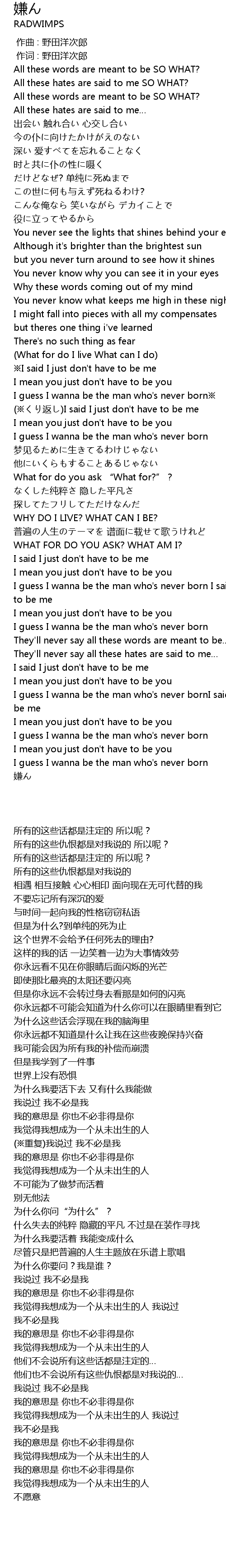 | [00:01.00] | 作词 : 野田洋次郎 |
