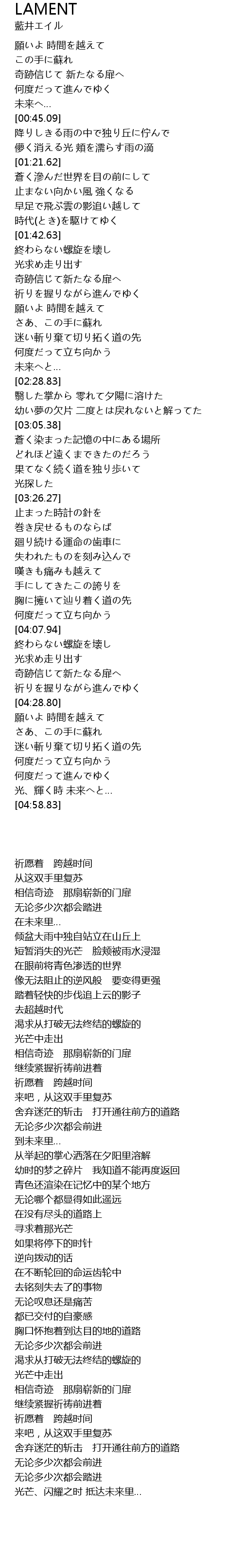 | [04:24.48] | 祈りを握りながら進んでゆく |