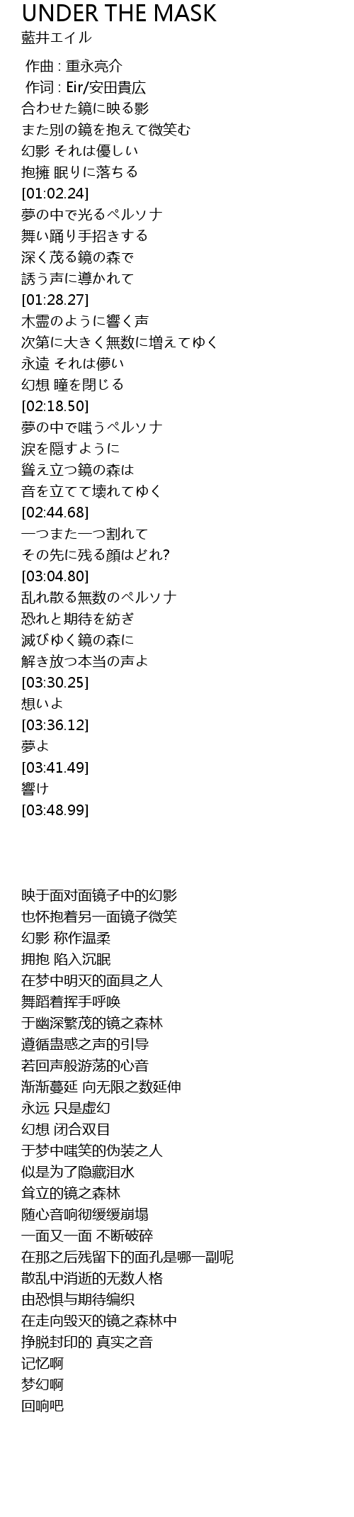 | [00:01.00] | 作词 : Eir/安田貴広 |