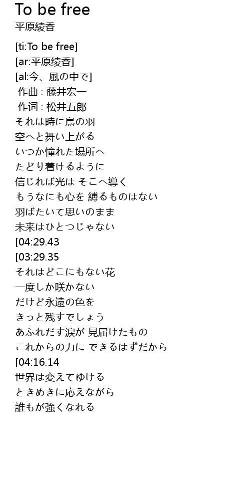 | [01:56.05][03:29.35][04:36.12] | meng to be free |