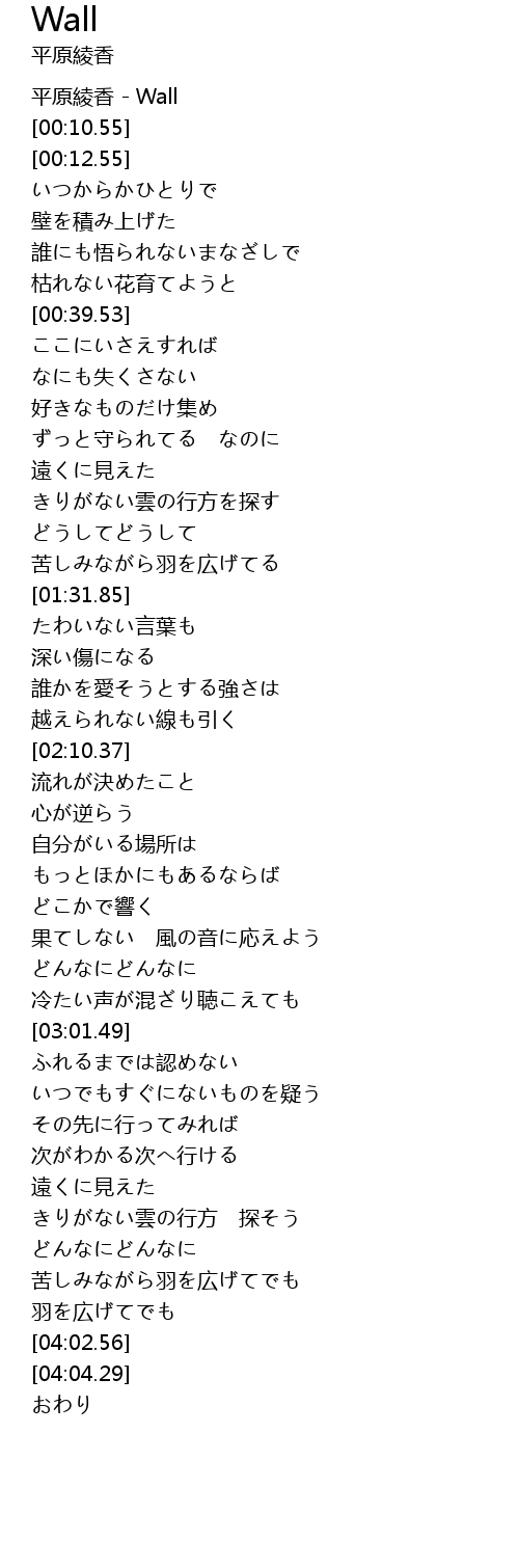 | [00:00.00] | píng yuán líng xiāng Wall |
