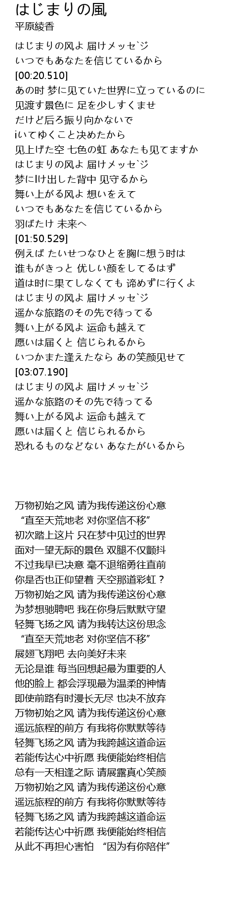 | [02:23.950] | はじまりの风よ 届けメッセ`ジ |