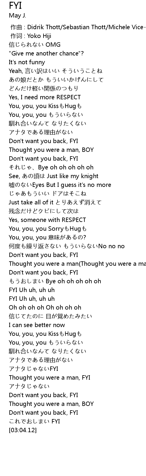 | [00:52.68] | Don't want you back, FYI |