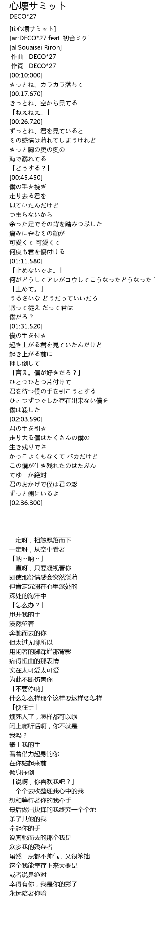 | [00:00.00] | zuò qǔ : DECO 27 |