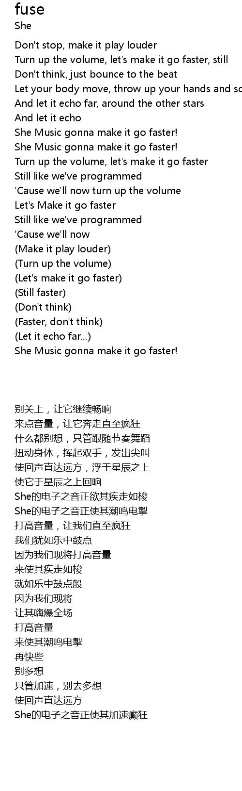 | [01:18.20] | Turn up the volume, let's make it go faster |