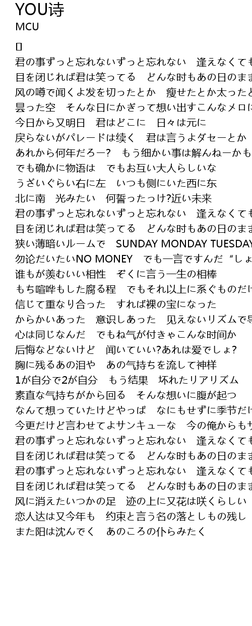| 昙った空 そんな日にかぎって想い出すこんなメロに混じって | |