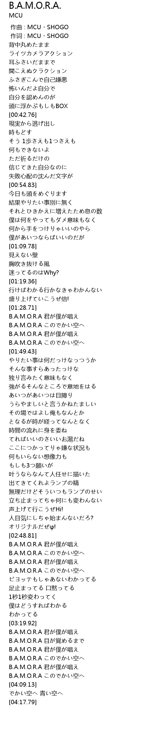 | [03:53.37] | B.A.M.O.R.A このでかい空へ |