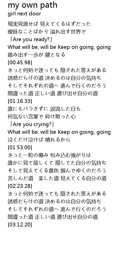 | [03:04.22] | 間違った道 正しい道 選び出せ自分の道 |