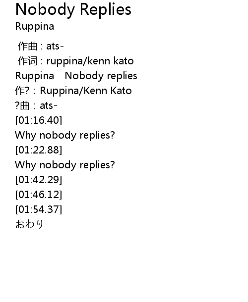 | [00:00.00] | Ruppina Nobody replies |