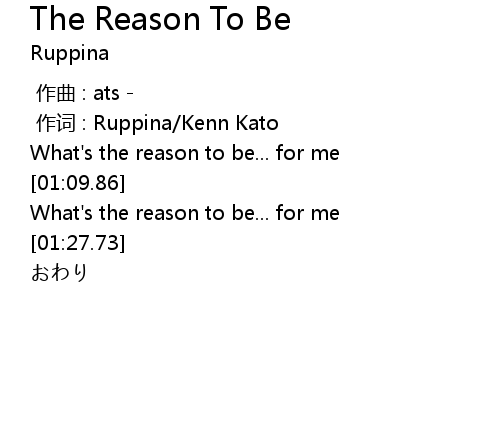 | [00:01.00] | 作词 : Ruppina/Kenn Kato |