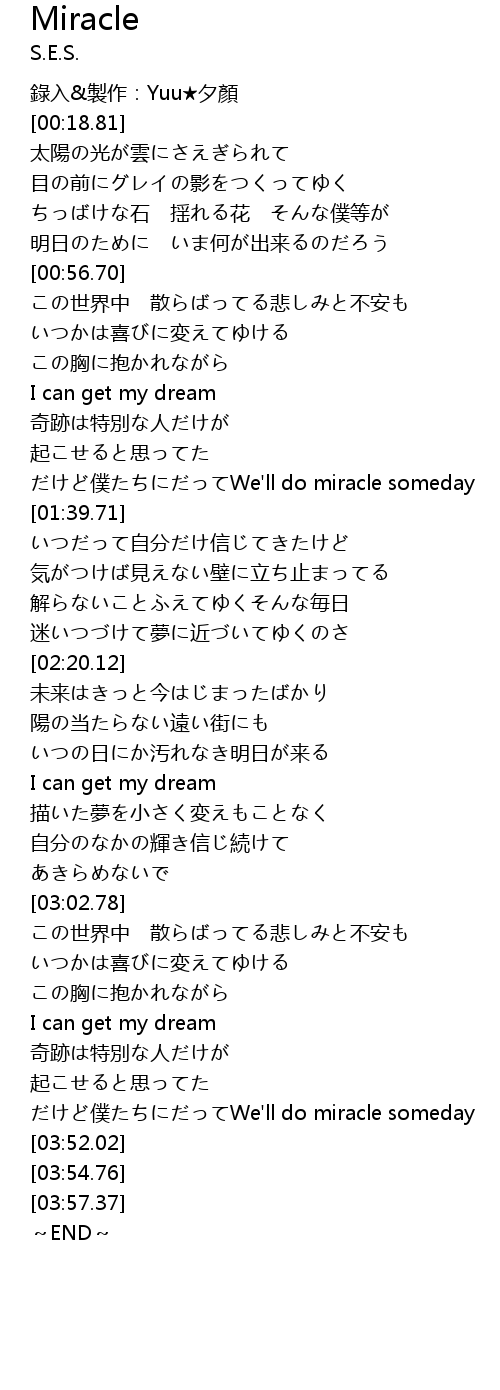 | [03:43.51] | だけど僕たちにだってWe'll do miracle someday |