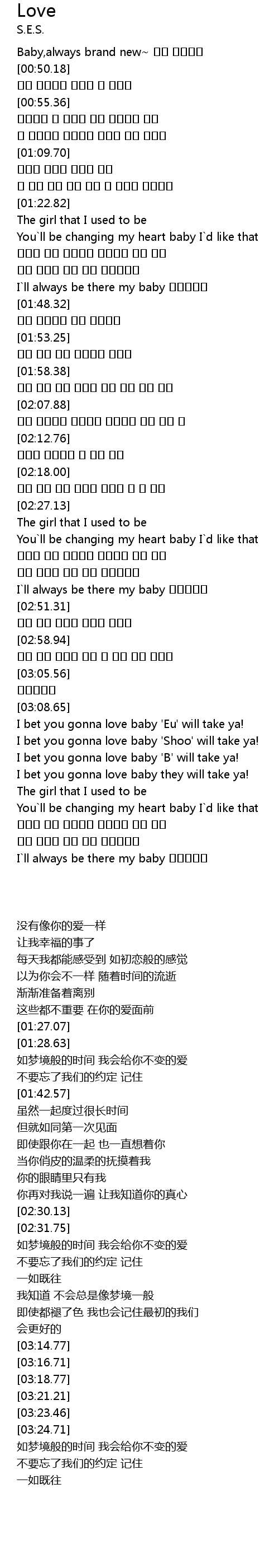 | [00:45.78] | Baby,always brand new~ 너의 사랑만큼 |