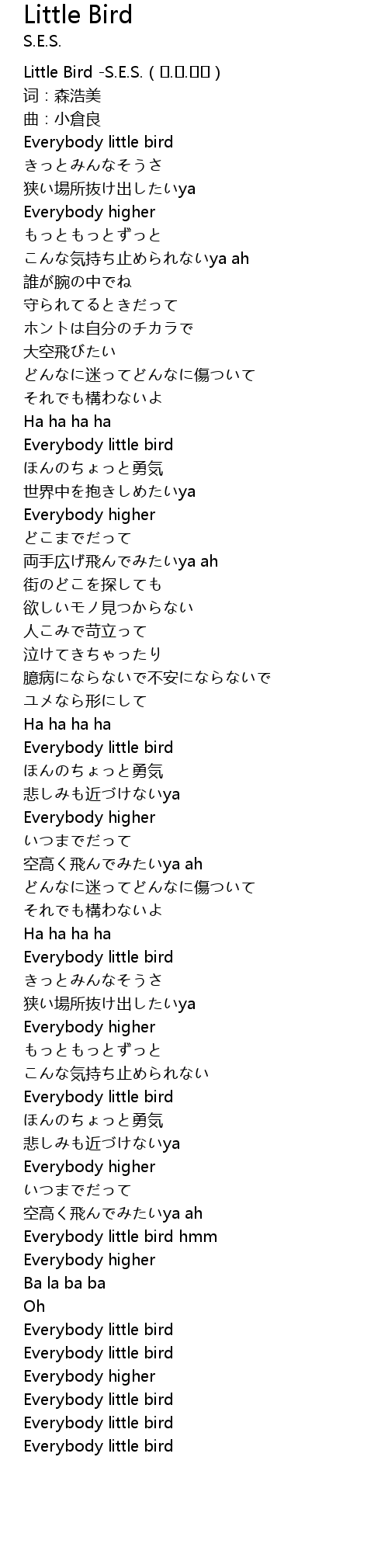 | [00:12.112] | Everybody little bird |