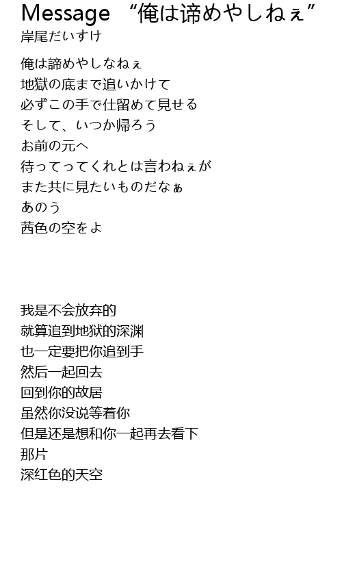 | Song | Message “俺は谛めやしねぇ” |