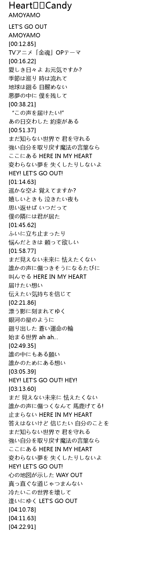 | [03:07.65] | HEY! LET' S GO OUT! HEY! |