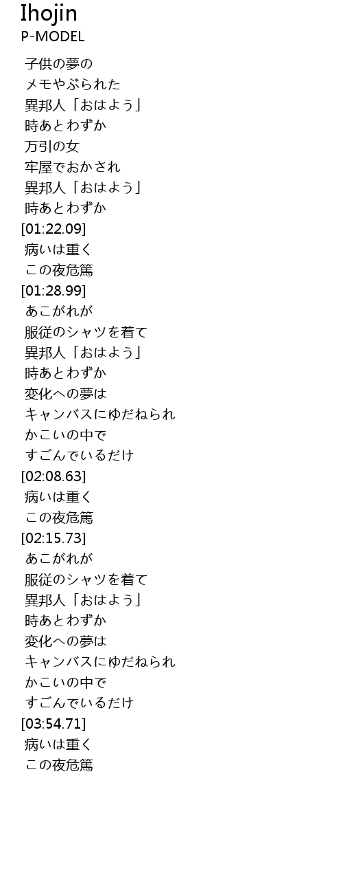 | [01:49.44] | 異邦人「おはよう」 |