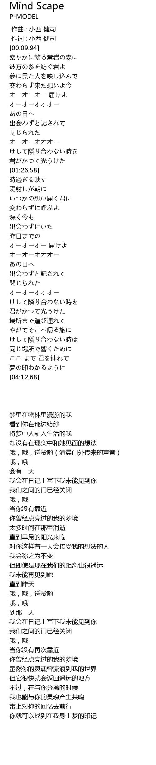 | [00:01.000] | 作词 : 小西 健司 |