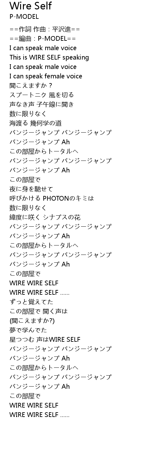 | [00:00.771] | ==作詞 作曲:平沢進== |