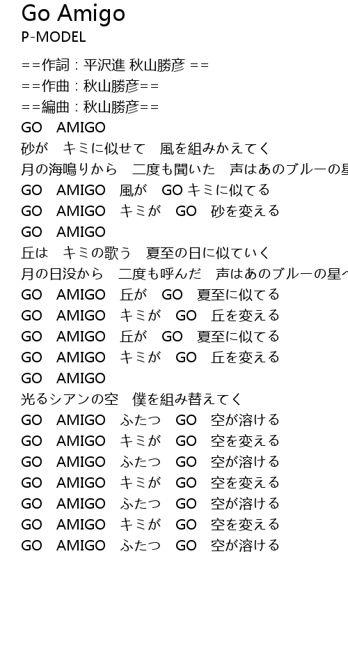 | [00:45.179] | GO AMIGO 風が GO キミに似てる |