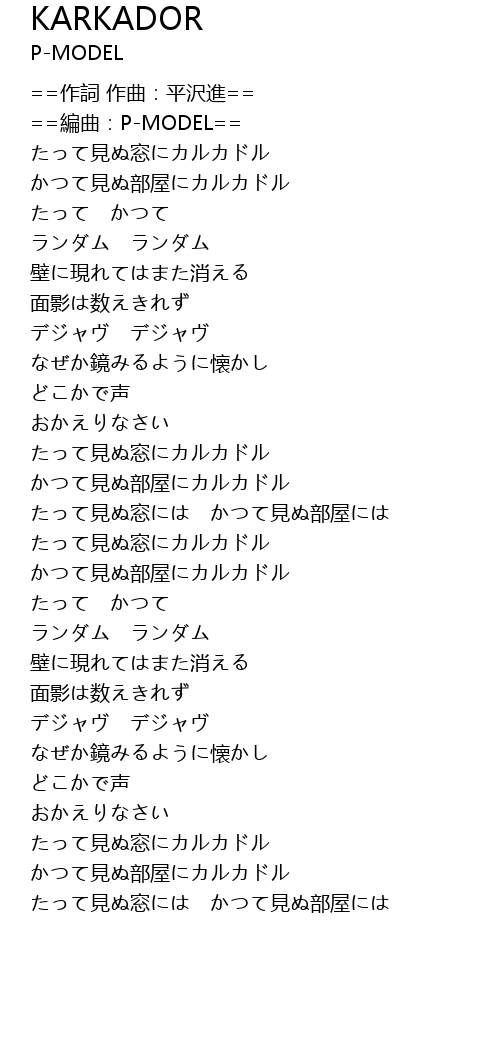 | [00:04.637] | ==編曲:P-MODEL== |
