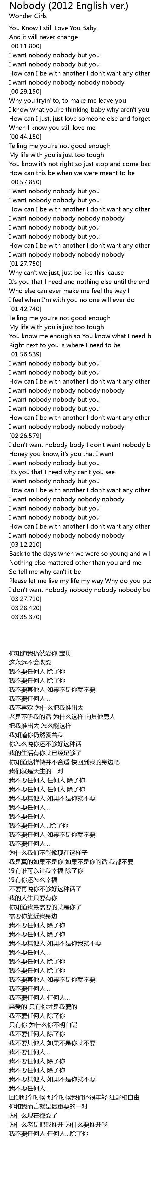 | [03:08.350] | I want nobody nobody nobody nobody |