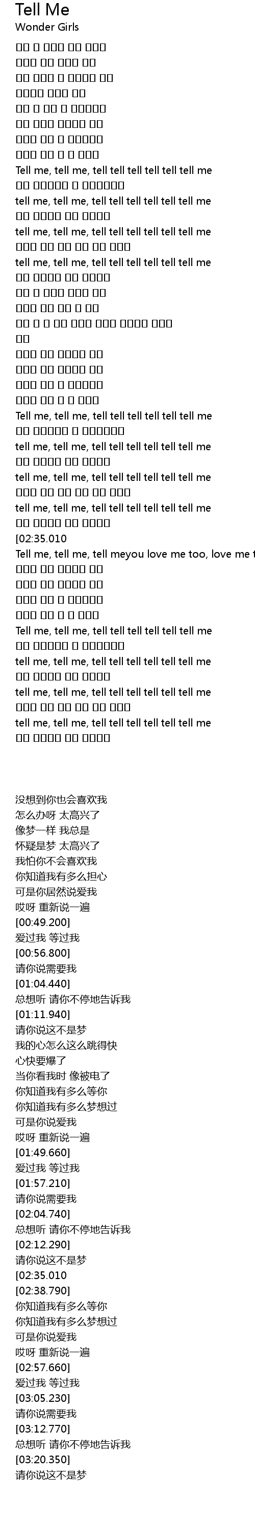 | [01:57.210] | tell me, tell me, tell tell tell tell tell tell me |