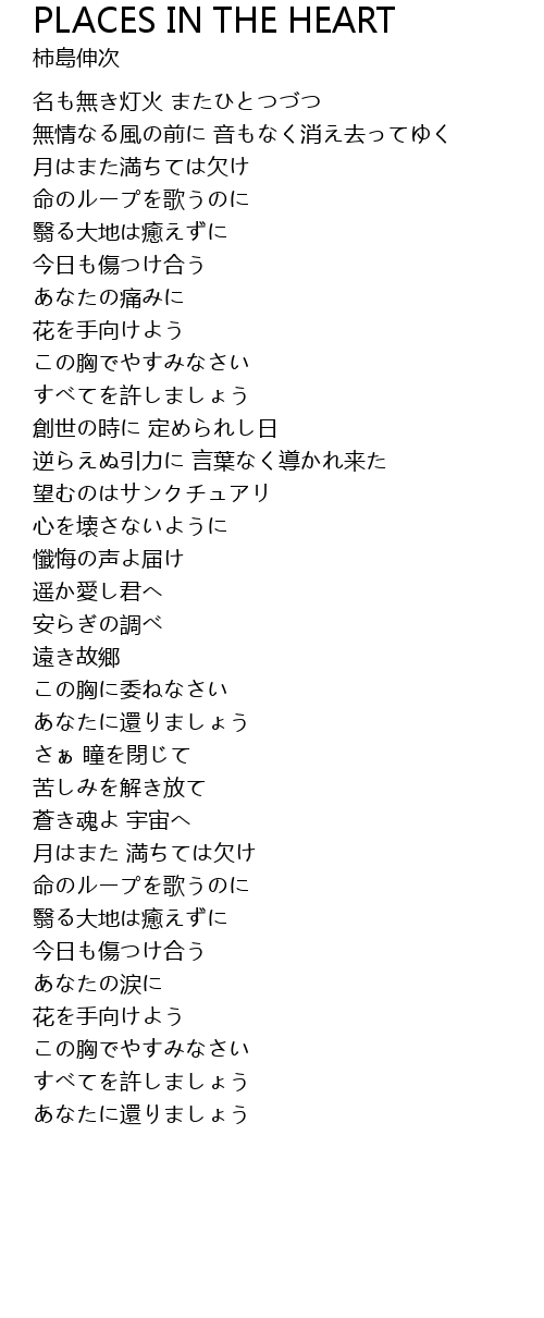 | Song | PLACES IN THE HEART |