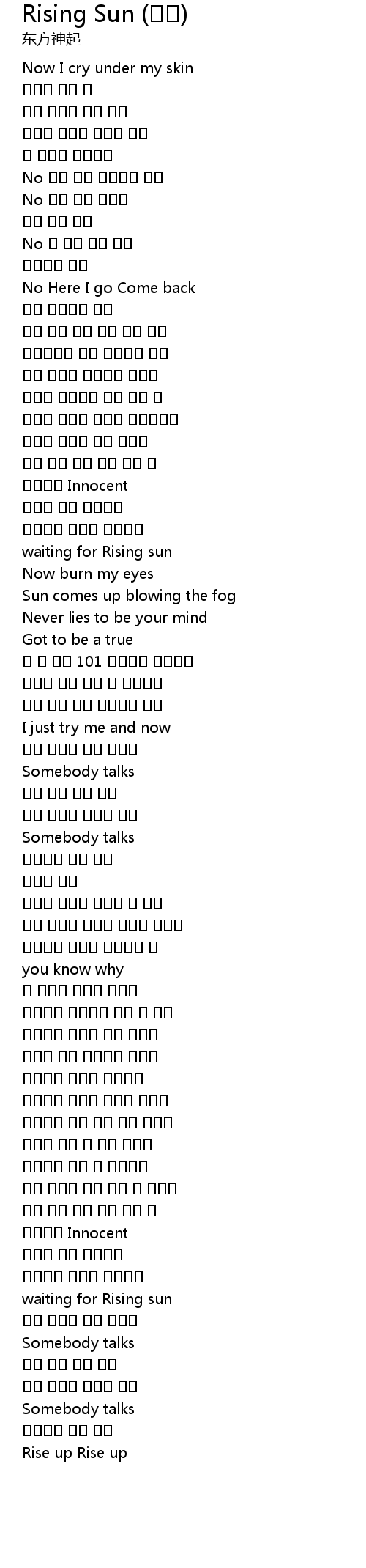 | Song | Rising Sun (순수) |