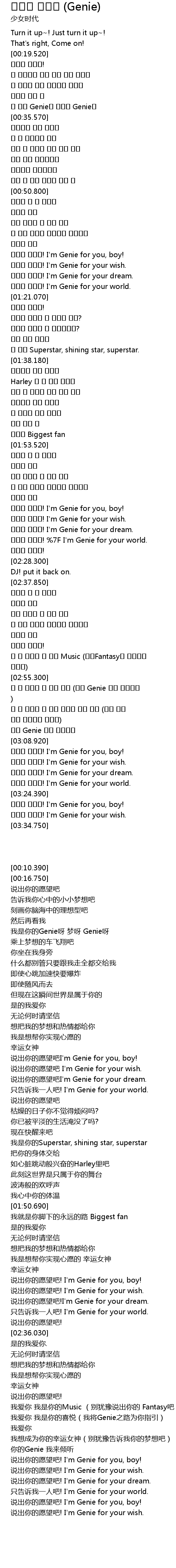 | [03:05.820] | 너의 Genie 내가 들어줄게 |