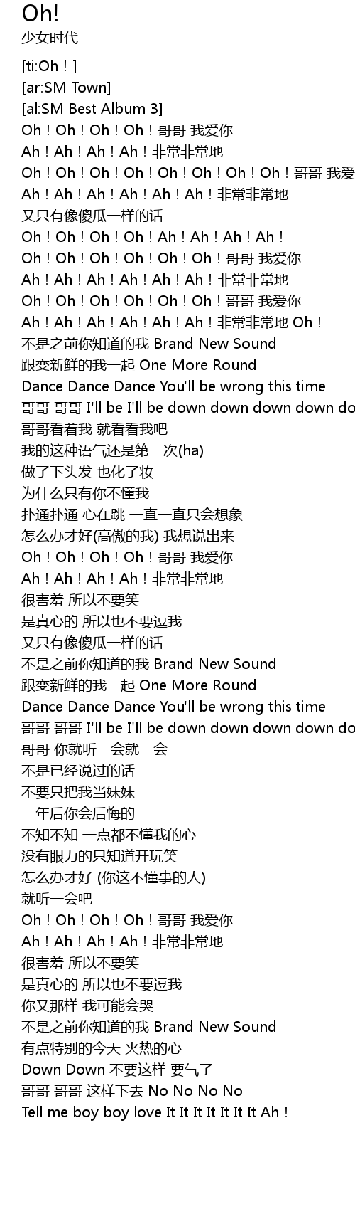| [18:00.00] | Oh!Oh!Oh!Oh!哥哥 我爱你 Ah!Ah!Ah!Ah!非常非常地 |