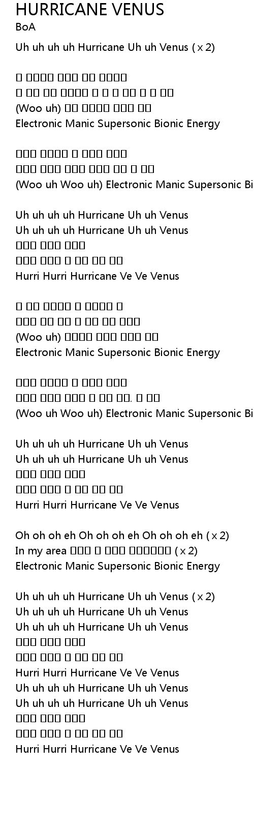 | Uh uh uh uh Hurricane Uh uh Venus | |