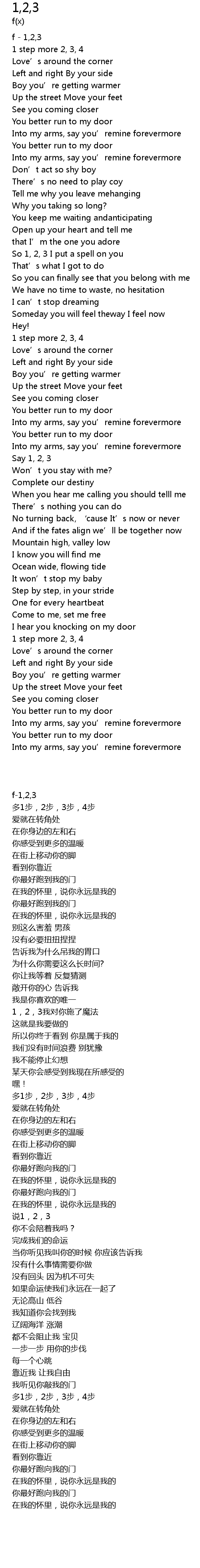 | Song | 1,2,3 |