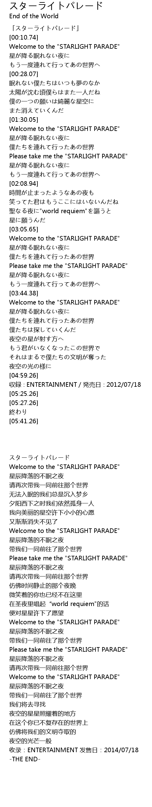 | [03:27.76] | Please take me the "STARLIGHT PARADE" |