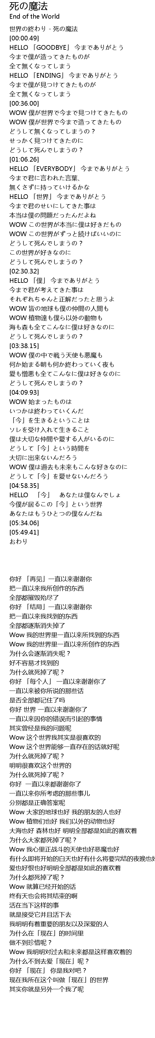 | [00:00.00] | 世界の終わり - 死の魔法 |