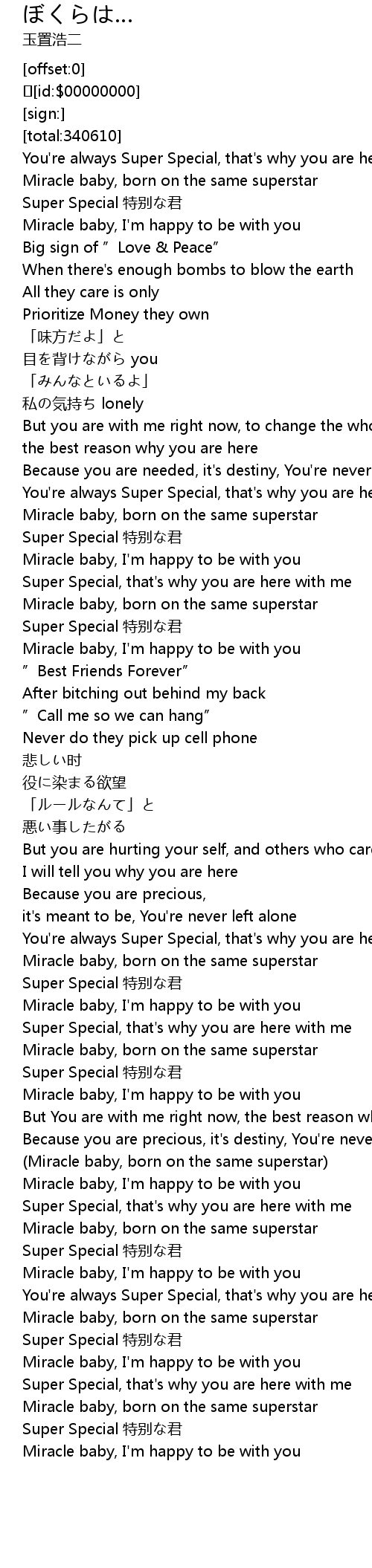 | [00:01.638] | You' re always Super Special, that' s why you are here with me |