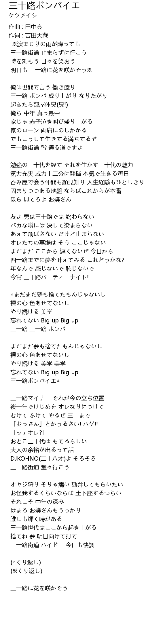 | Song | 三十路ボンバイエ |