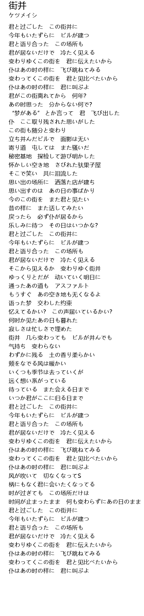 | [03:38.98] | 变わりゆくこの街を 君に伝えたいから |