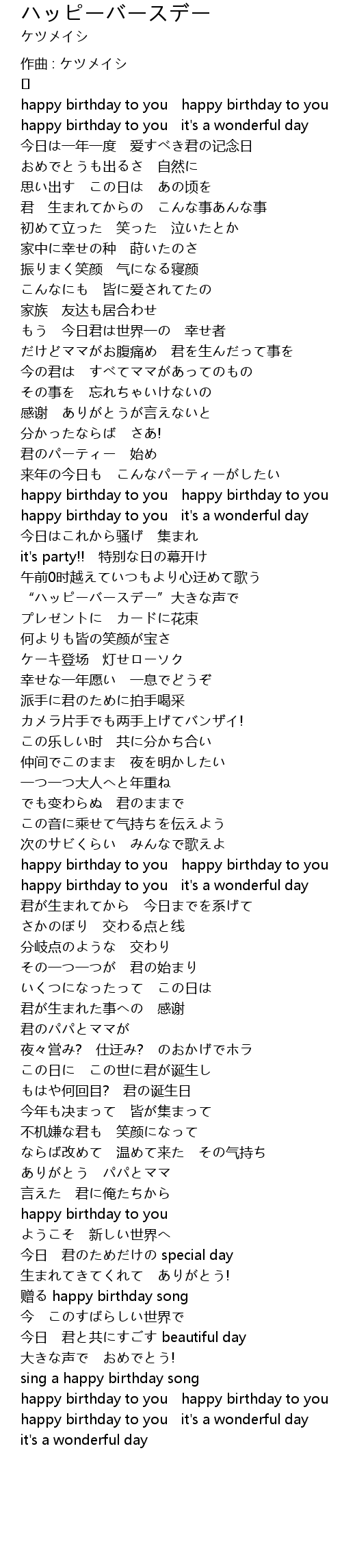 | happy birthday to you it' s a wonderful day | |