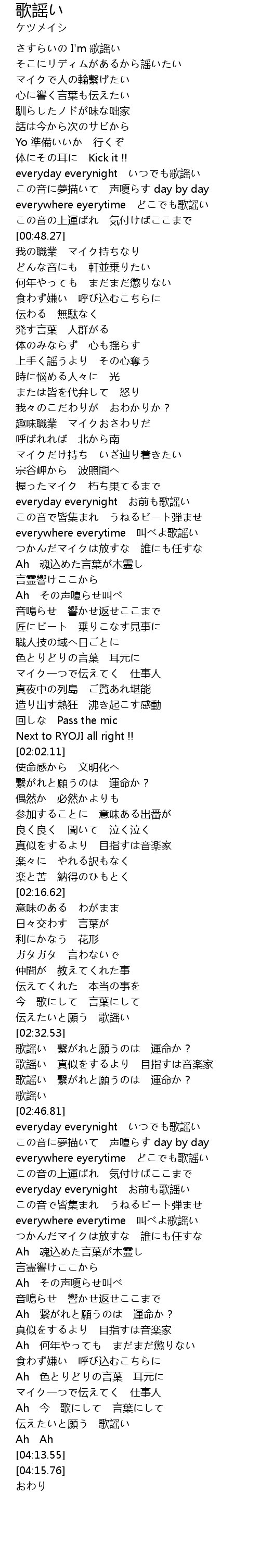 | [00:40.85] | everywhere eyerytime どこでも歌謡い |