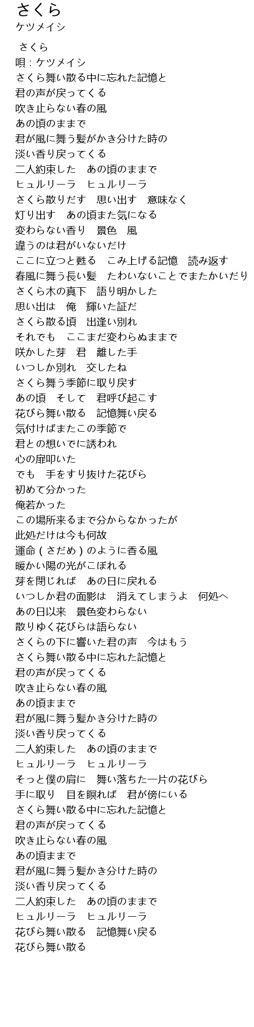 | [01:04.23] | さくら散りだす 思い出す 意味なく |
