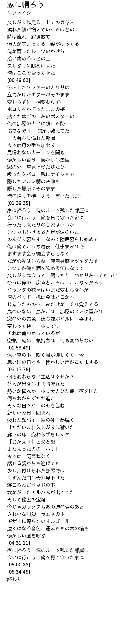 | [01:40.27] | 家に帰ろう 俺のルーツ残した部屋に |