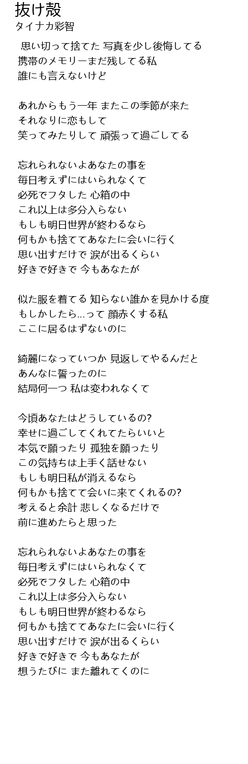 | Song | 抜け殻 |
