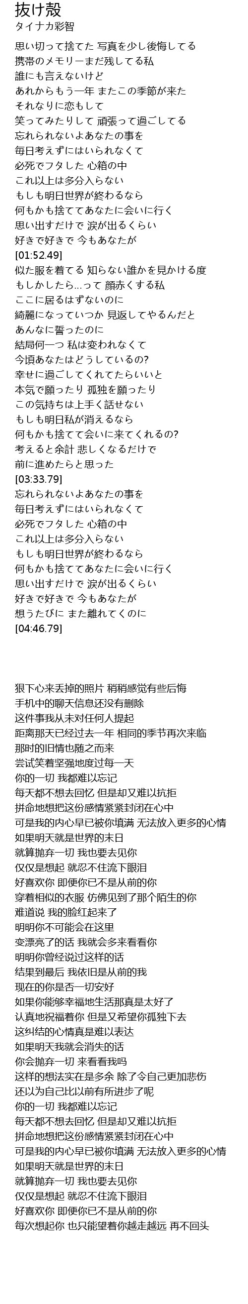 | [00:16.84] | 思い切って捨てた 写真を少し後悔してる |